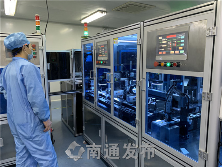 10月30日,南通伊仕生物技術(shù)股份有限公司生產(chǎn)車(chē)間內,一臺臺自主研發(fā)的全自動(dòng)化設備馬力全開(kāi),零星的幾個(gè)工作人員身穿潔凈防護服,只需動(dòng)動(dòng)手指操作控制面板。分切、組裝、入袋包裝、批號打碼……一個(gè)個(gè)小小的試劑板從這里誕生,被運往世界各地,日產(chǎn)量約170萬(wàn)人份。