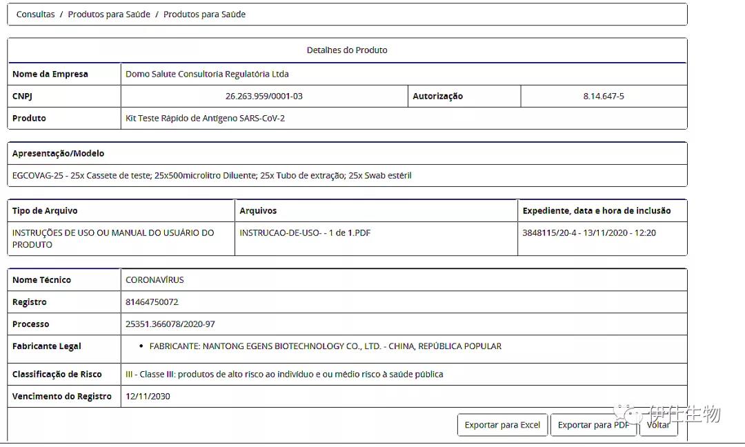 喜訊!伊仕生物新冠病毒抗原檢測試劑獲巴西醫療器械注冊證