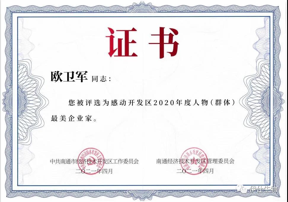 歐總是南通市中青年科學(xué)技術(shù)帶頭人,2020年度江蘇省企業(yè)“創(chuàng )新達人”,伊仕生物是南通市新冠肺炎疫情防控重點(diǎn)保障企業(yè)。