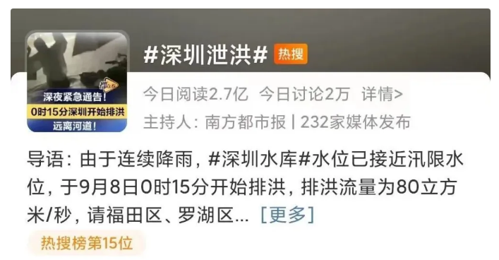 5日-9日,臺風(fēng)“???/span>先后兩次登陸福建、廣東。受其影響,南方多地出現特大暴雨,福建省、廣東省氣象臺多次發(fā)布“暴雨預警一級”。福州、廈門(mén)、漳州、深圳、廣州、佛山等城市內澇嚴重,部分城市雨水齊腰,短時(shí)間強降雨超過(guò)100毫米,深圳降雨量更是打破1953年以來(lái)的降雨極值,地鐵灌水,深圳泄洪多次登上各大平臺的熱搜第一。