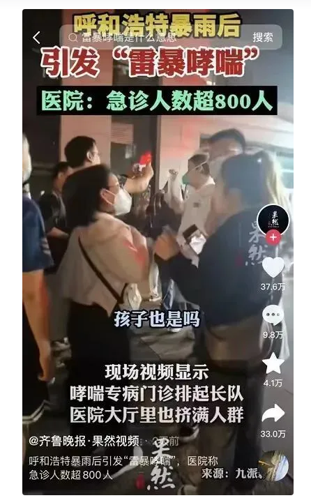 隨后,呼和浩特市衛健委工作人員表示,近期當地多家醫院的雷暴哮喘病人確實(shí)增多了。